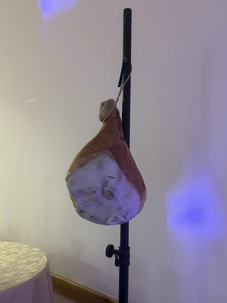 Kot vedno smo za udeležence priredili ‘šacanje’, kjer je bilo potrebno ugotoviti čim bolj točno težo pršuta. Pršut smo podarili udeleženki, ki je skoraj zadela težo pršuta. Na sliki pa je dotični pršut, ob katerem so se vsem nam cedile sline. 🤤